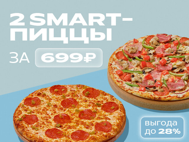 Выбери две разные smart-пиццы и закажи их всего за 699 рублей