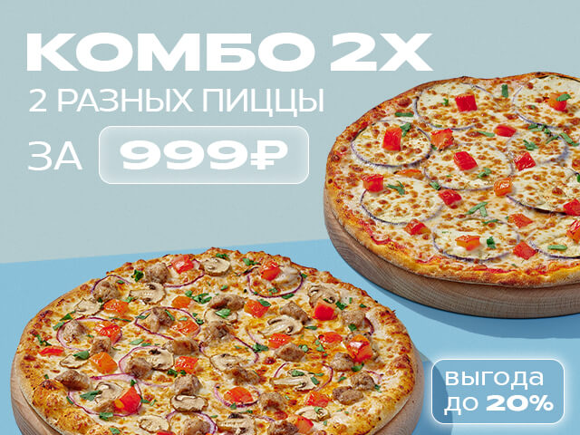 Две разные пиццы всего за 999 рублей