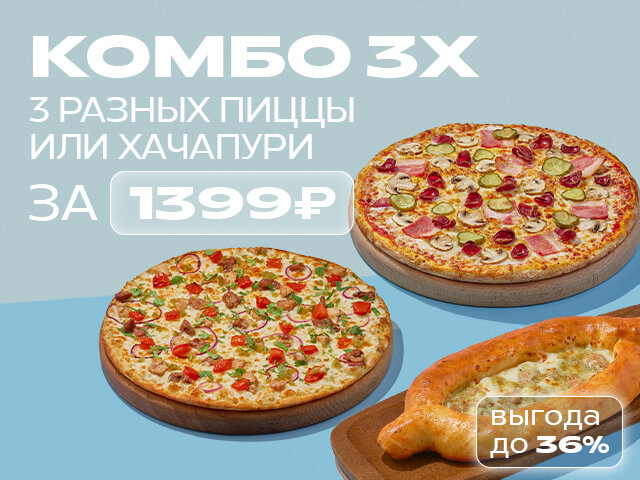 Выбери комбо из трех пицц или хачапури за 1399 рублей