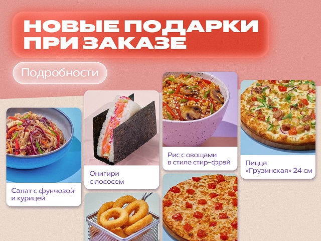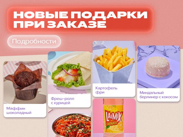Оформи заказ через мобильное приложение или сайт на сумму более 1550 рублей и получи подарок на выбор!