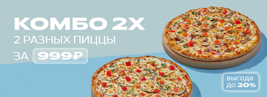 - на все пиццы 30 см на тонком и традиционном тесте, кроме пицц: «Баклажановая», «Расколбас», «Том ям с курицей», «Грузинская», «Великолепная семерка», «От шефа», «Шашлычная», «Супермясная», «Супер-пицца», «Филадельфия», «Цезарь», «Курица и бекон», «Чикен Чиз»;